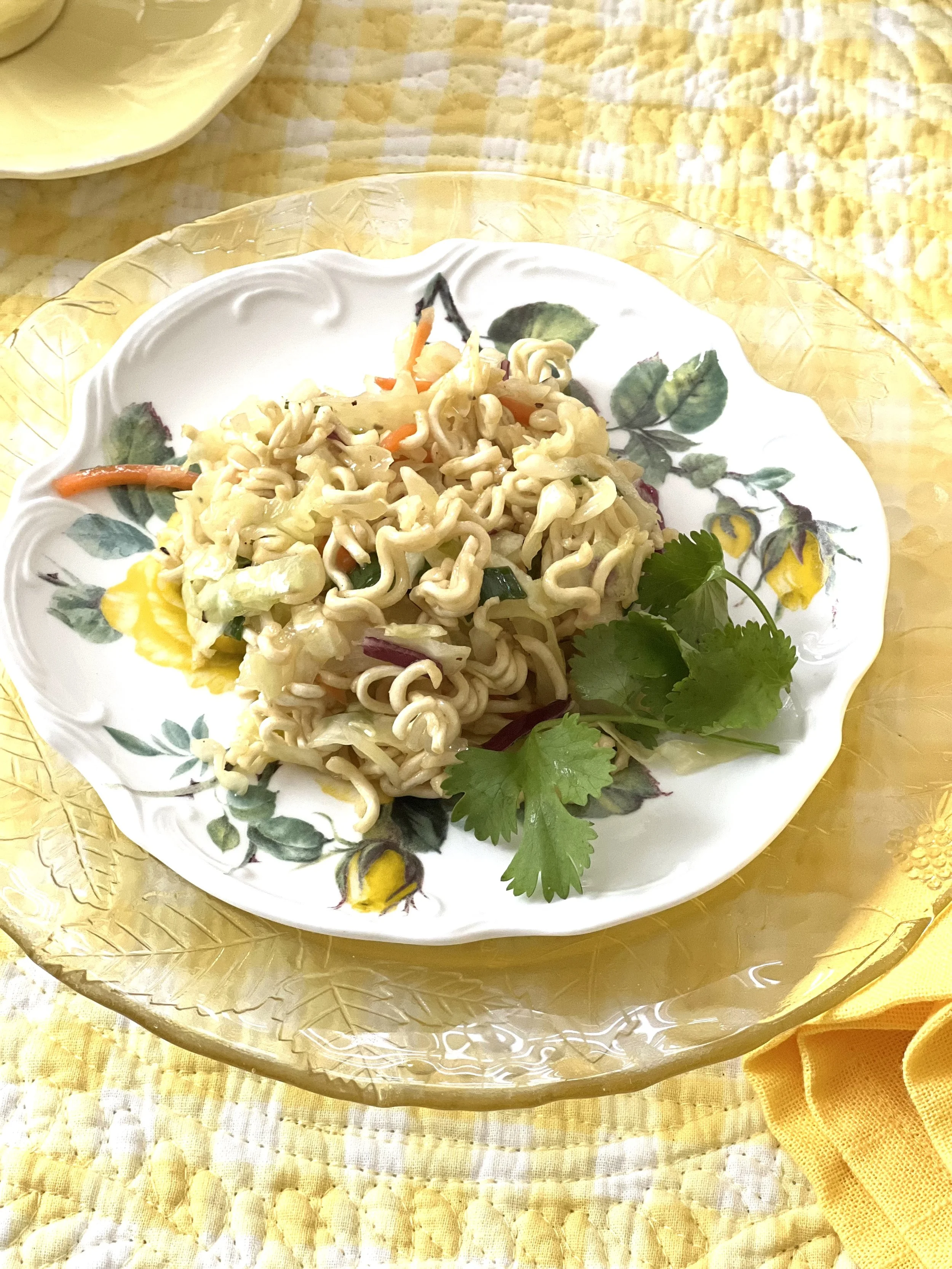- 2 packages Chicken Flavor Top Ramon soup, uncooked (seasoning packets on the side)